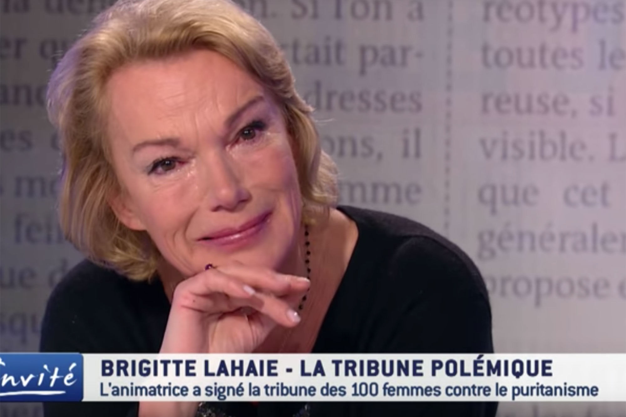 Lorsque l’animateur Patrick Simonin lui a demandé si elle avait été blessée par les réactions des téléspectateurs et internautes, Brigitte Lahaie a fondu en larmes. «Je suis surtout une femme qui a souffert dans sa chair, et qui depuis 30 ans aide les femmes à se libérer, c’est tout. Et quand on est incomprise à ce point, c’est vrai que ça fait mal».