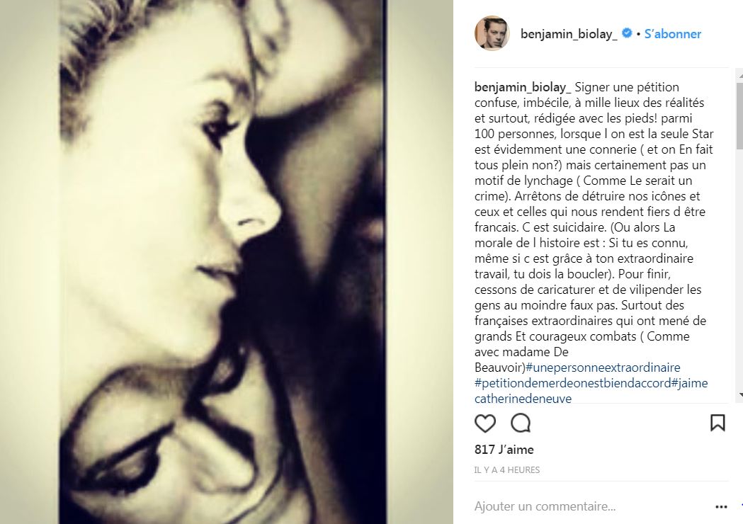 Catherine Deneuve : Benjamin Biolay pousse un coup de gueule sur Instagram