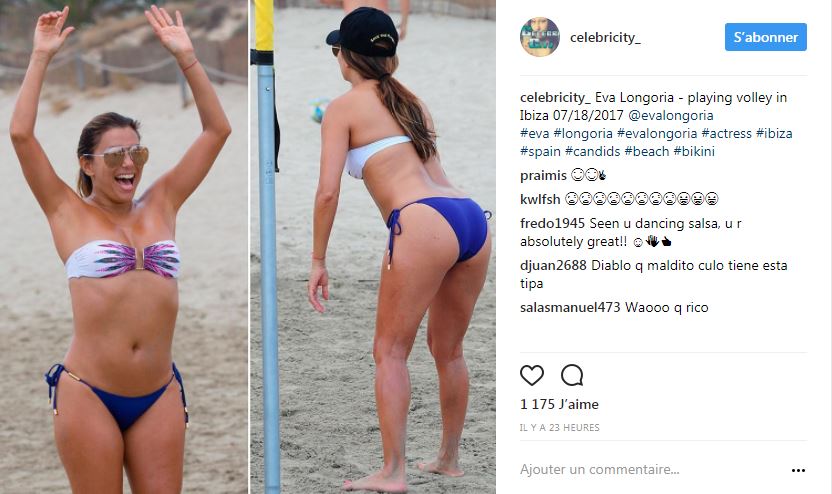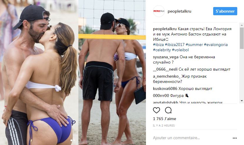 Depuis quelques mois, les internautes ne sont pas tendres avec la star. Certains pointent du doigt ses formes et sa prise de poids. Sur Snapchat, Eva Longoria mettait fin aux rumeurs de grossesse d’une amusante manière. Cette star n’attend pas un enfant, mais elle profite des bonnes choses de la vie comme des aliments et des boissons. L’actrice de 42 ans est fière de ses kilos “en trop” et elle compte bien dévoiler son corps comme elle l’entend. Sur la plage, elle profite d’une petite pause pour passer quelques moments complices avec son mari, José Antonio Baston. Les deux amoureux échangent des baisers et jouent au volley-ball ; une bonne manière de dire que la flamme dans leur couple est toujours là. Découvrez quelques clichés ci-dessous.