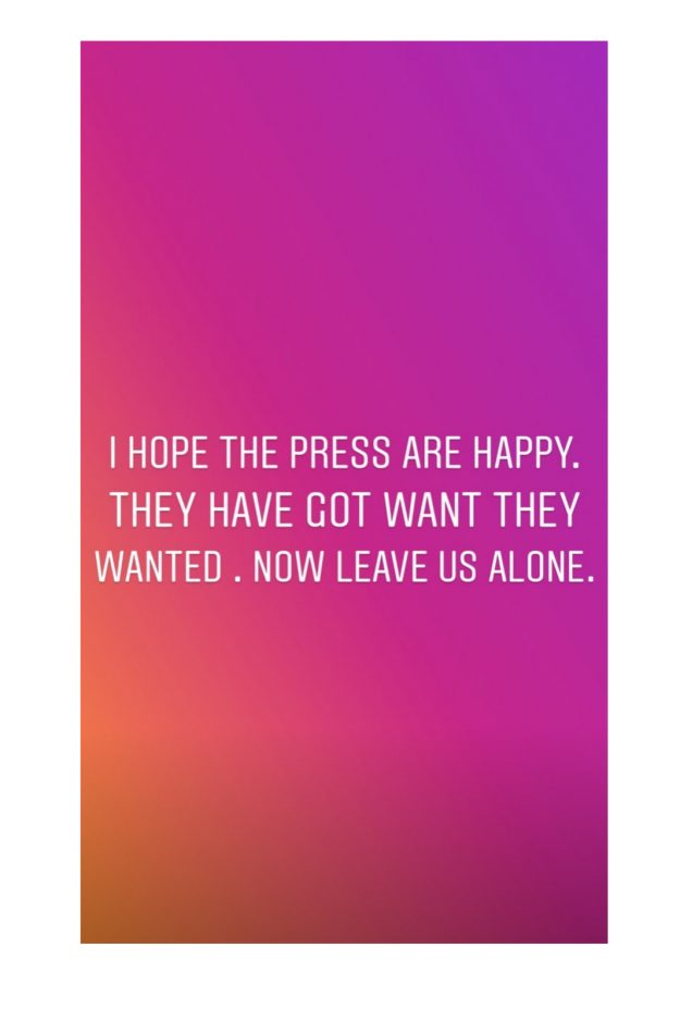 ‘I hope the press are happy. They got what they wanted. Now leave us alone,’ she wrote.