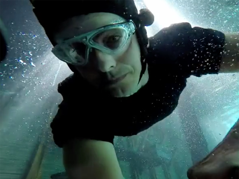 Submerging himself in the water, the 51-year-old is trapped in a ‘ship’ full of water – having to hold his breath whilst finding the stars.
