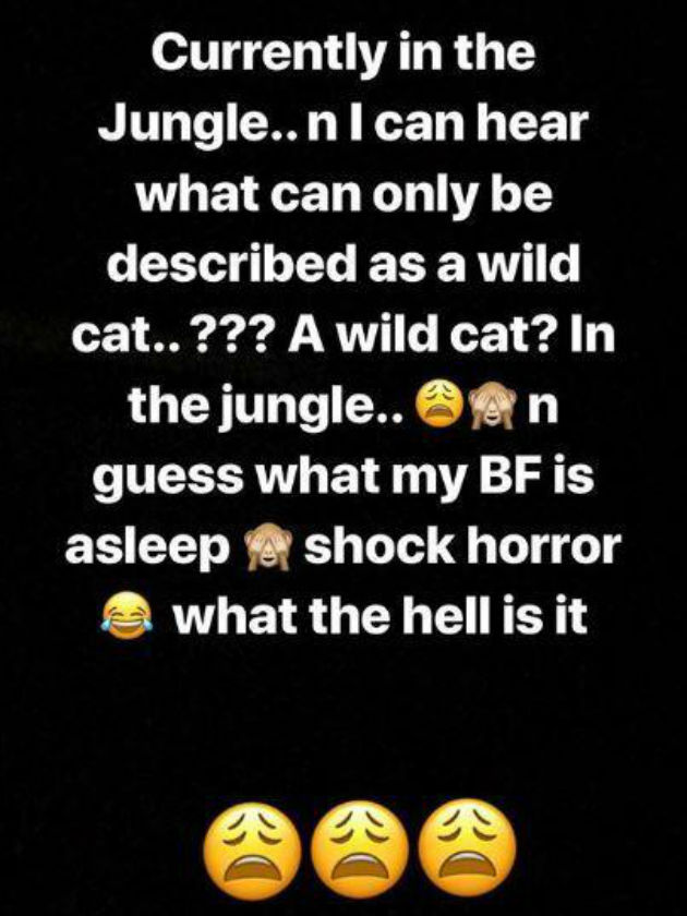 Leigh-Anne a récemment publié une histoire Instagram lisant: ' Actuellement dans la jungle .. n je peux entendre ce qui ne peut être décrit comme un chat sauvage .. ??? Un chat sauvage? Dans la jungle.
