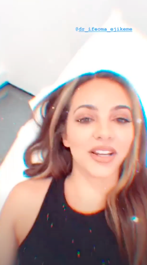 Elle portait un jean noir décontracté et un En haut sans manches, on peut voir Jade donner à la caméra sa meilleure moue, alors qu'elle expliquait: "Je suis allée voir @dr_ifeoma_ejikeme pour obtenir un apport en vitamines bien nécessaire avant le Kilimanjaro."