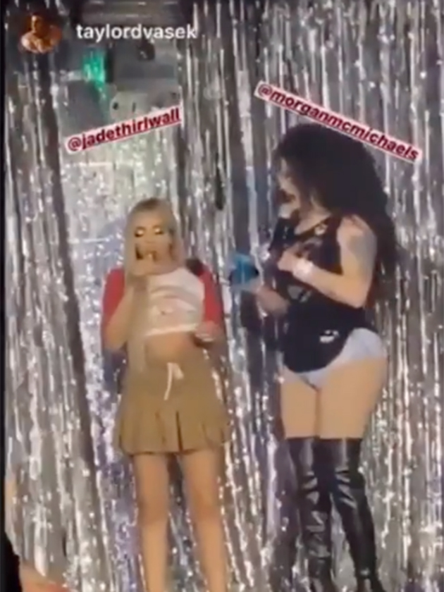 Le plaisir de Jade ne s'est pas arrêté elle a également partagé une vidéo alors qu'elle abattait des scènes sur scène aux côtés de Morgan McMichaels, 37 ans, vedette de Scott Race dans Drag Race.
