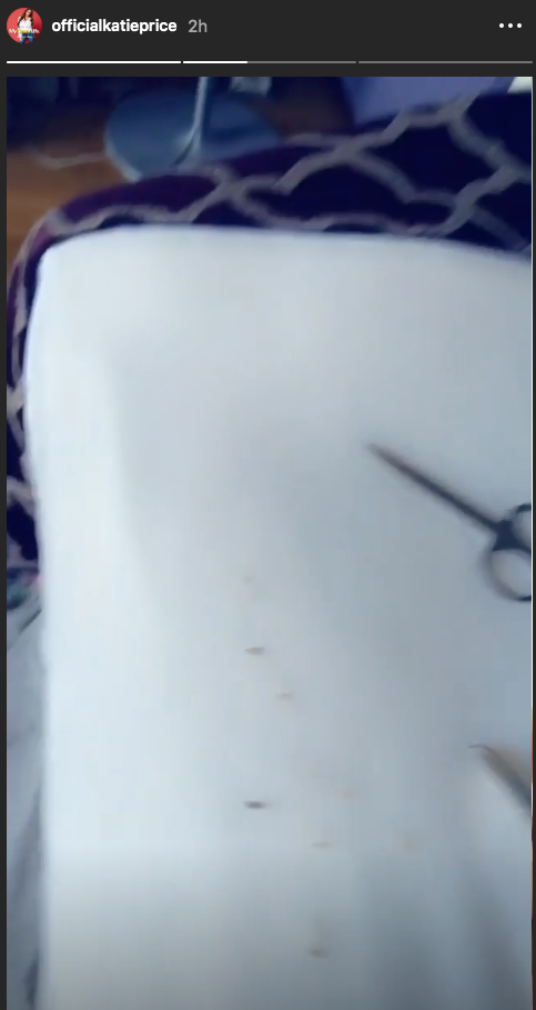'Maintenant c'est l'amour. Regarde ça… les points de suture, 'dit Katie à la caméra avant de zoomer sur les points de suture et une paire de ciseaux.