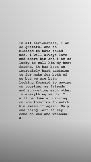 «Je serai à Dancing On Ice demain pour le regarder le briser à nouveau. Il ne reste qu'une chose à dire, allez Wes et Vanessa! x. '