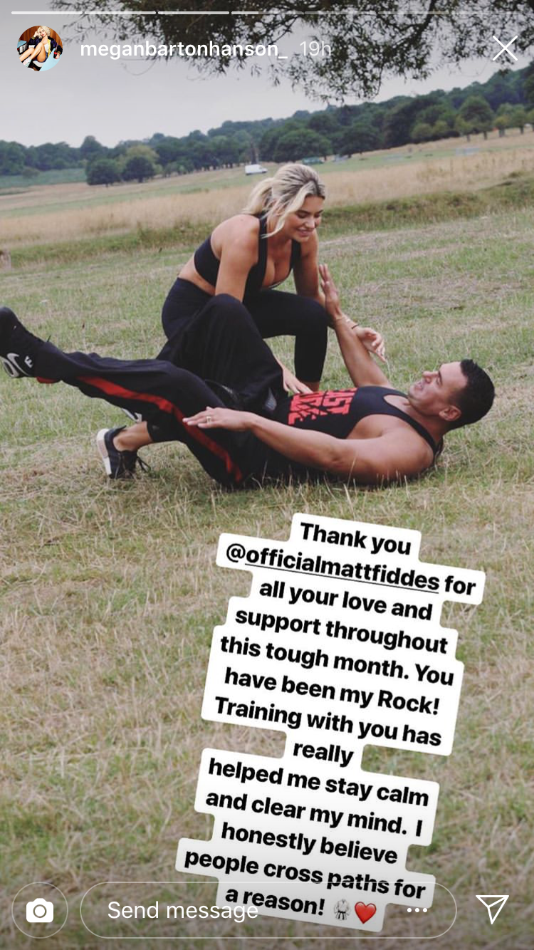 Megan Barton Hanson a félicité son entraîneur personnel séduisant de l'avoir aidée à surmonter sa scission difficile de la co-star de Love Island Wes Nelson .