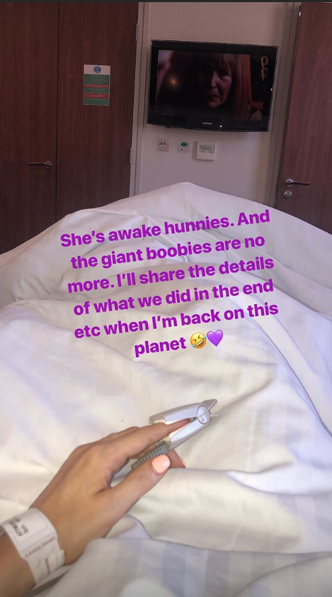 And on Wednesday, the reality TV babe, 28, shared an Instagram story clip from her London hospital bed after waking up from the surgery.