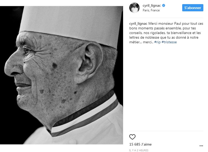 Actu : Paul Bocuse mort : Cyril Lignac lui rend un tendre hommage sur Instagram