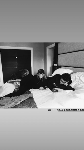 Taking to her Insta Stories, 25-year-old Perrie can be seen cosying up to her footie player beau as the two chilled out on the bed.