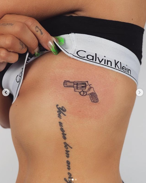 ‘So many people are getting shot to pieces and of course, the best thing for a young woman to do as a role model to millions of impressionable young girls is to tattoo a gun.’