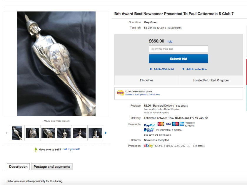 Have you still got your awards? Would you sell them like your ex Paul Cattermole did?