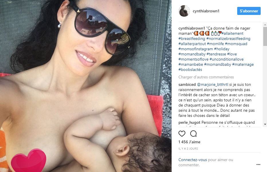 La jeune femme a partagé un selfie sur lequel on la voit en train de nourrir son bébé. Elle pose topless et a pris soin de cacher l’un de ses tétons avec un emoji en forme de cœur pour ne pas qu’Instagram censure sa publication. En légende, Cynthia Brown a écrit “Ça donne faim de nager maman” en ajoutant quelques hashtags qui prônent le droit des femmes à allaiter leur bébé où qu’elles se trouvent, sous-entendu dans les lieux publics, ce qui n’est pas toujours bien vu par certains. Plusieurs internautes ont pointé du doigt le fait que l’ancienne candidate du télé-crochet de TF1 s’affiche à moitié nue et partage un moment d’intimité sur les réseaux sociaux. Heureusement pour elle, bon nombre de ses fans l’ont défendu. Mais la polémique est loin d’être terminée.