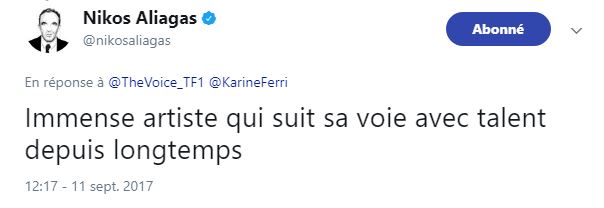 Nikos Alias félicite Pascal Obispo, “un immense artiste”