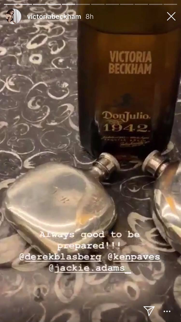 Preparing the nightcap for the flasks, Victoria revealed she’d even gone as far as to personalise them – with the names of her mum Jackie, hairdresser and close friend Ken Paves, a friend and journalist Derek Blasberg engraved on each bottle.
