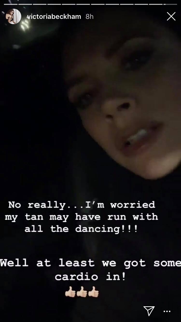 However, even Posh can’t escape a lil’ dance floor perspiration – as she signed off with one final parting message for fans…