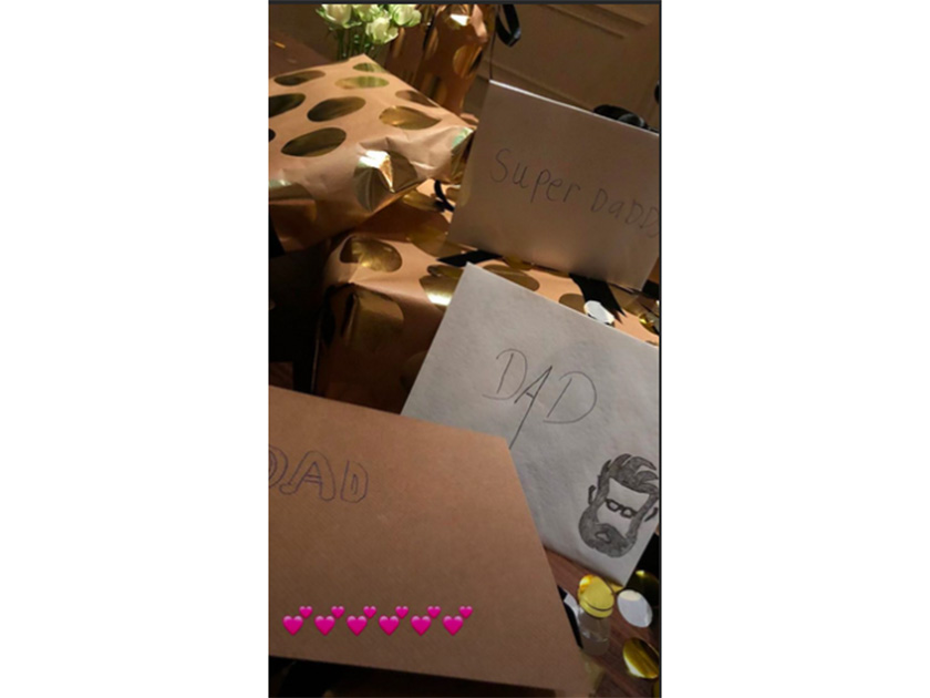 Donnant aux fans un gros plan des pressions de David, Victoria a ensuite zoomé pour montrer les cartes que ses enfants avaient écrites, y compris celle qui dit 'super papa sur l'enveloppe et un autre qui a un petit dessin (et étrange) de l'étoile de footie dans le coin.