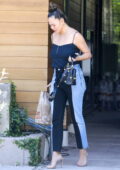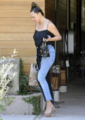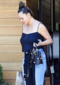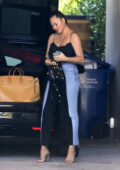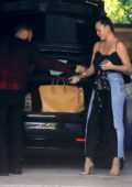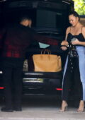 Chrissy Teigen a fière allure dans un jean bicolore et un crop top noir alors qu’elle sort avec John Legend à Los Angeles