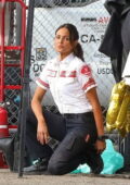Eiza Gonzalez aperçue en train de faire exploser des ballons et d’installer une table pleine de champagne sur le tournage de “ Ambulance ” à Los Angeles