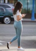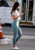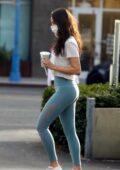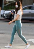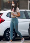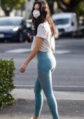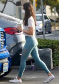 Eiza Gonzalez sports t-shirt blanc et leggings sarcelle tout en faisant un café à West Hollywood, Californie