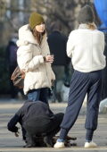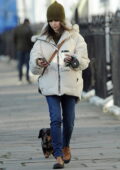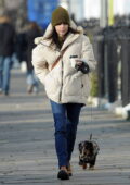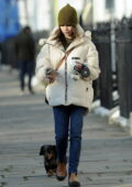 Emilia Clarke s’emballe dans une doudoune et un bonnet lors de la visite d’amis à Londres, Royaume-Uni