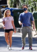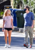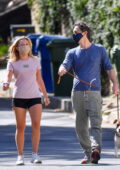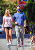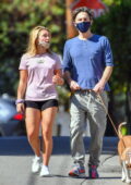 Florence Pugh et Zach Braff sortent promener leur chien dans le quartier de Los Angeles