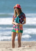 Hailey Bieber repéré dans un ensemble coloré lors d’une séance photo sur la plage à Malibu, Californie