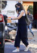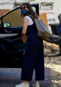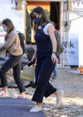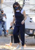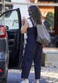 Jennifer Garner salue les caméras après s’être arrêtée pour vérifier les progrès de sa nouvelle maison à Brentwood, en Californie