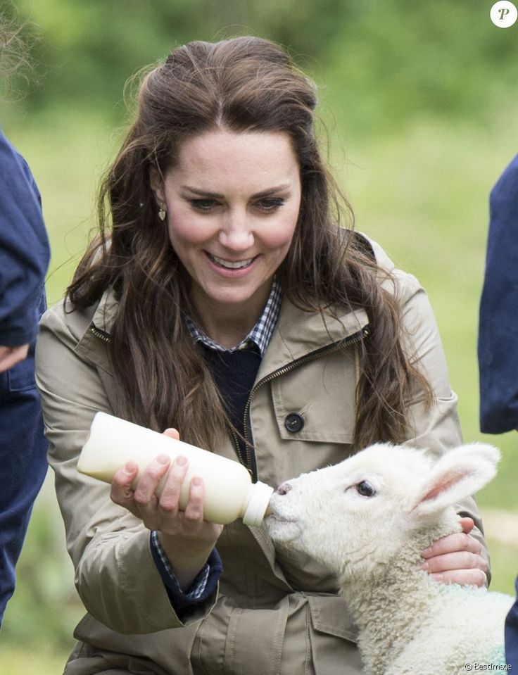 Kate Middleton, duchesse de Cambridge, visite avec des élèves et enseignants d'une école primaire de Vauxhall une ferme à Arlingham, dans le Gloucestershire, Avec l 'association des fermes pour les enfants de la ville, le 3 mai 2017.