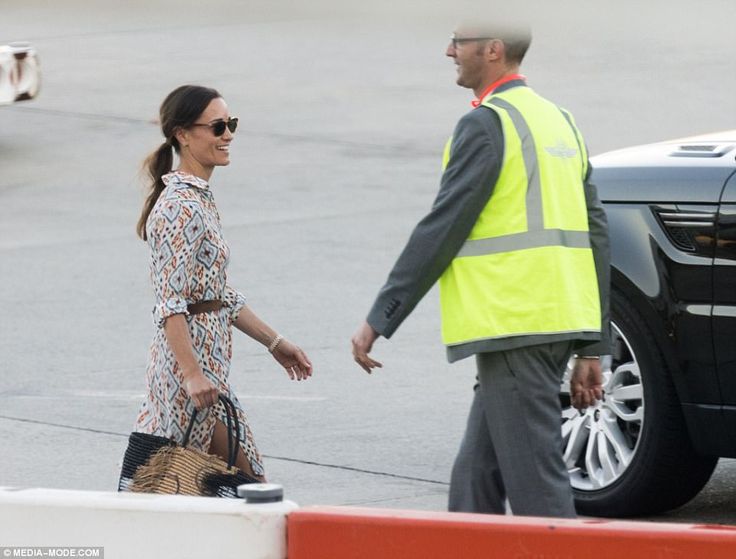 Pippa sourit alors qu'elle se promène à travers l'aéroport vers une voiture en attente.