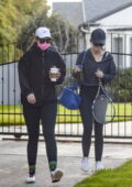 Katherine Schwarzenegger et Christina Schwarzenegger vu quitter leur leçon de tennis à Brentwood, Californie