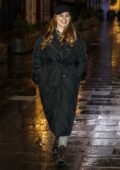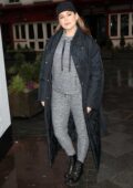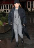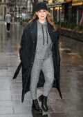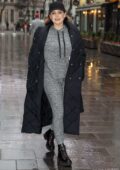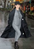 Kelly Brook est superbe dans les tenues décontractées alors qu’elle sort avec un pantalon de jogging gris avec un manteau long et des bottes à Londres, au Royaume-Uni