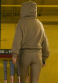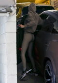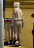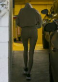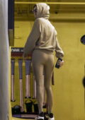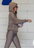 Kendall Jenner porte un sweat à capuche avec des leggings assortis alors qu’elle quitte une salle de sport à Beverly Hills, Californie