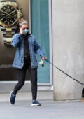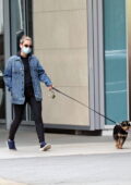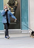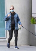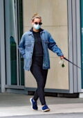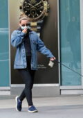 Lili Reinhart enfile un sweat à capuche et un pantalon de jogging assortis avec une veste en jean tout en promenant son chien à Vancouver, Canada