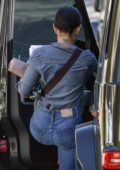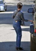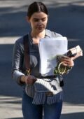 Lucy Hale a fière allure dans une chemise grise et un jean alors qu’elle quitte une réunion d’affaires à Los Angeles