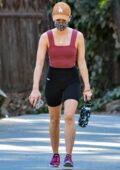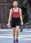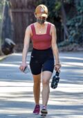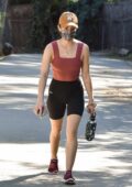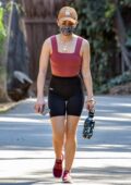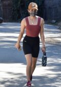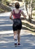 Lucy Hale montre sa silhouette en forme dans un short marron et un short en lycra noir lors d’une randonnée à Los Angeles