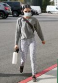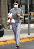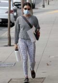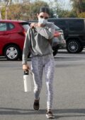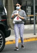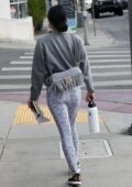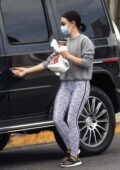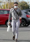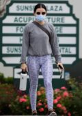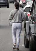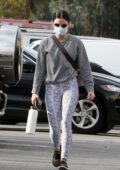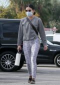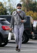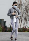 Lucy Hale porte un sweat-shirt gris et des leggings à imprimé animal alors qu’elle se dirige vers une séance d’entraînement à Los Angeles