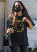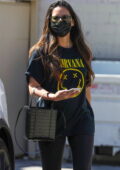 Olivia Munn arbore des leggings noirs avec un t-shirt “ Nirvana ” alors qu’elle quitte sa salle de sport à West Hollywood, Californie