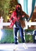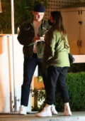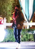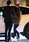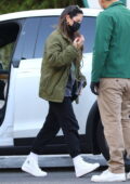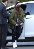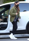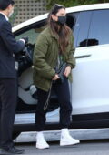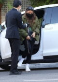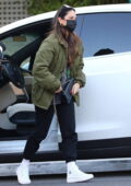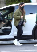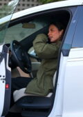 Olivia Munn vu sortir de sa Tesla alors qu’elle arrive à San Vicente Bungalows à West Hollywood, Californie