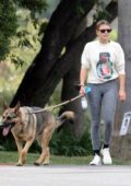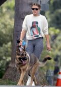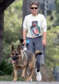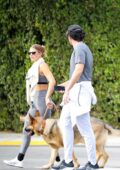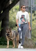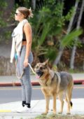 Sofia Richie a enfilé un sweat-shirt “ Inamorata ” et des leggings gris tout en promenant son chien de famille à Beverly Hills, Californie