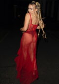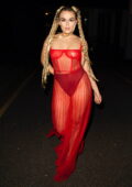 Tallia Storm étourdit dans une robe rouge pure alors qu’elle quitte la promo radio pour célébrer son nouveau single “ I Am The News ” à Londres, au Royaume-Uni