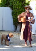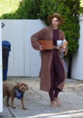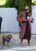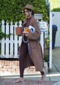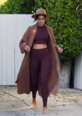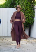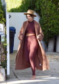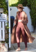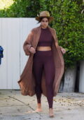 Taylor Hill montre sa silhouette incroyable dans un top court et des leggings assortis alors qu’elle sort pieds nus à Los Angeles