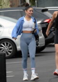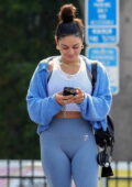 Vanessa Hudgens montre sa silhouette tonique dans un haut court blanc et des leggings bleu clair alors qu’elle se rend dans une salle de sport à Los Angeles