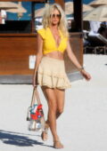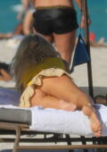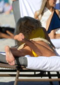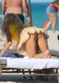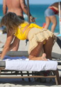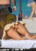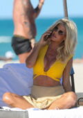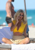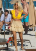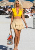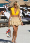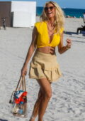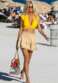 Victoria Silvstedt semble frappante dans un haut de bikini jaune tout en profitant de la journée ensoleillée à la plage de Miami, Floride